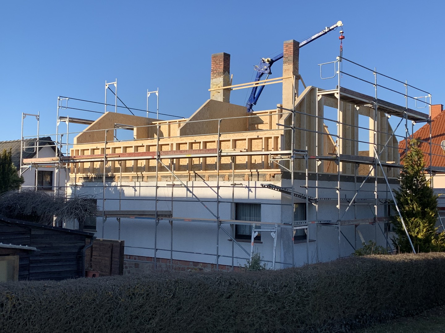 Nach der Vorfertigung alle Wand- und Deckenelementen führt unser erfahrenes Team den exakten und planmäßigen Aufbau durch. Anschließend fertigen wir gerne auch Ihren Dachstuhl und decken das Dach ganz nach Ihren Wünschen.